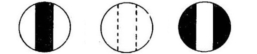 從光源(1)射出的光線,通過(guò)聚光鏡(3)、濾色鏡(4)經(jīng)起偏鏡(5)成為平面偏振光,在半波片(6)處產(chǎn)生三分視場(chǎng)。通過(guò)檢偏鏡(8)及物、目鏡組(9)可以觀察到如圖二所示的三種情況。轉(zhuǎn)動(dòng)檢偏鏡,只有在零度時(shí)(旋光儀出廠前調(diào)整好)視場(chǎng)中三部分亮度一致(如圖二b)。