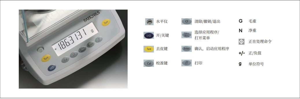 - 【注:BSA 系列天平內(nèi)置多種應(yīng)用程序,如稱重、密度測定、百分比、計數(shù)、不穩(wěn)定條 件稱量(動物稱量)、凈重 - 總重、求和、系數(shù)換算、稱量單位切換等,用戶可以根據(jù) 需要在菜單中選擇所需程序,并按提示進行進一步操作!