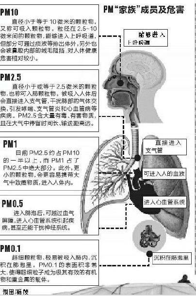 霧霾天氣現(xiàn)象會給氣候、環(huán)境、健康、經(jīng)濟(jì)等方面造成顯著的負(fù)面影響,例如引起城市大氣酸雨、光化學(xué)煙霧現(xiàn)象,導(dǎo)致大氣能見度下降,阻礙空中、水面和陸面交通;提高死亡率、使慢性病加劇、使呼吸系統(tǒng)及心臟系統(tǒng)疾病惡化,改變肺功能及結(jié)構(gòu)、影響生殖能力、改變?nèi)梭w的免疫結(jié)構(gòu)等。