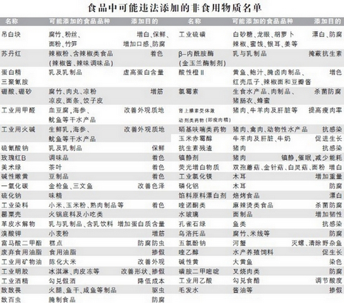 47種食品非法添加物集中公布 其中24種尚無檢測(cè)方法